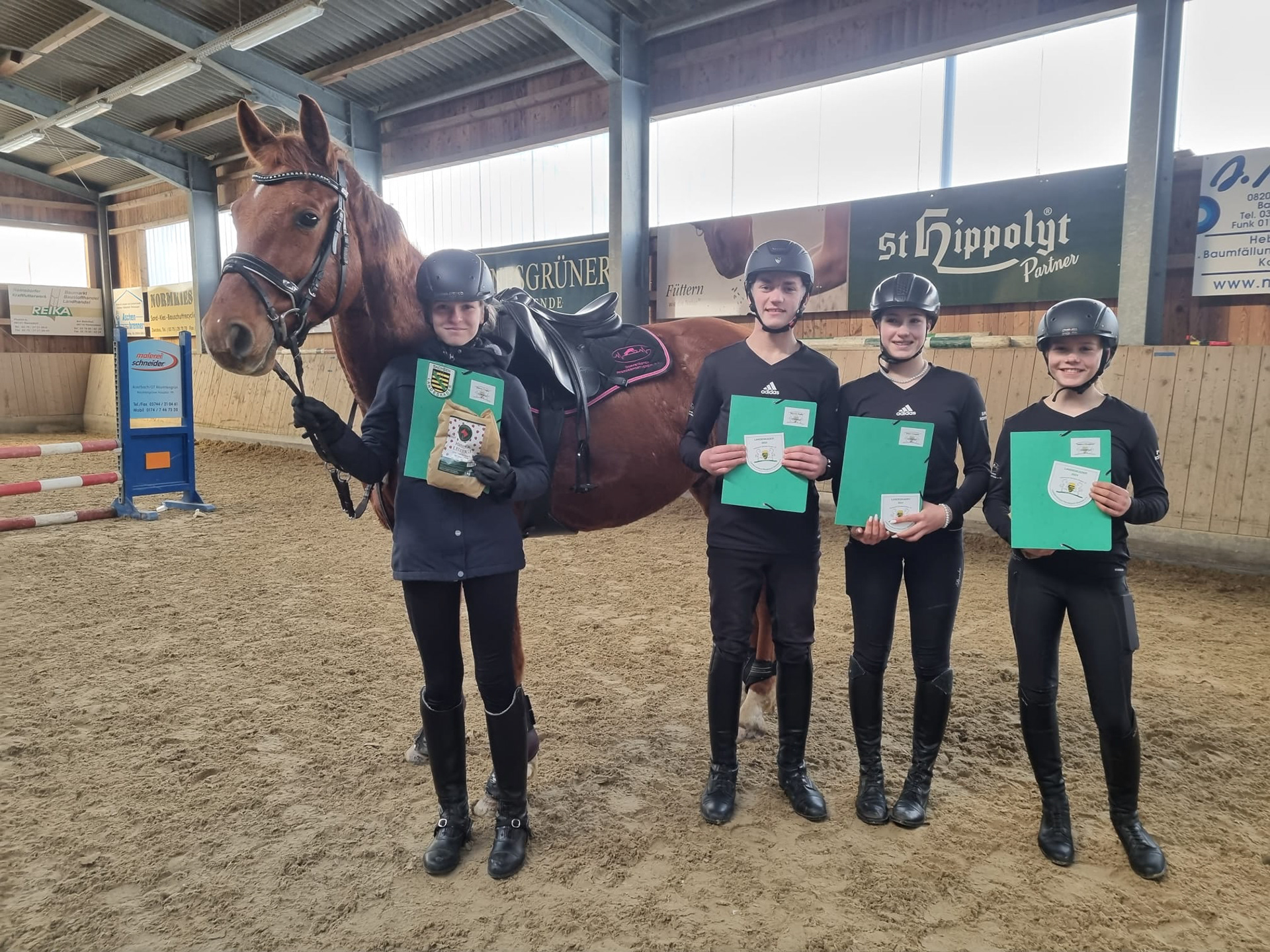 Parallel waren in Gombitz unsere Vierkämpfer erfolgreich. Nach dem Laufen und Schwimmen am Donnerstag und dem Reiten am Samstag ging der Sieg und der 2. Platz in der Altersklasse U18 an Sophie und Hanna. Die Altersklasse U14 konnte Lina für sich entscheiden und Mila Platz 3 erreichen. Im Vierkampf U12 konnte sich Ole über den 3. Platz freuen.