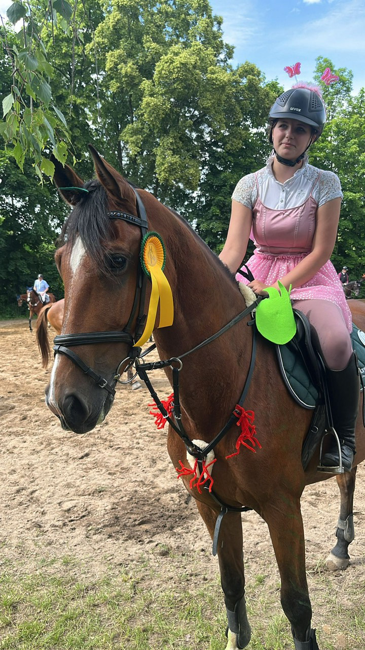 Nach Seifersdorf führen unsere Reiter ausnahmsweise mal nur zum Dressurreiten, doch auch hier brauchten wir uns nicht verstecken. Mit einem 2. Platz in der Dressurpferde A, sowie dem Sieg in der E-Dressur, sowie den Dressurprüfungen klasse A* und A** und weiteren Platzierungen fuhren Sophie, Lina, Lisbeth und Hanna mit einigen Schleifen wieder nach Hause.