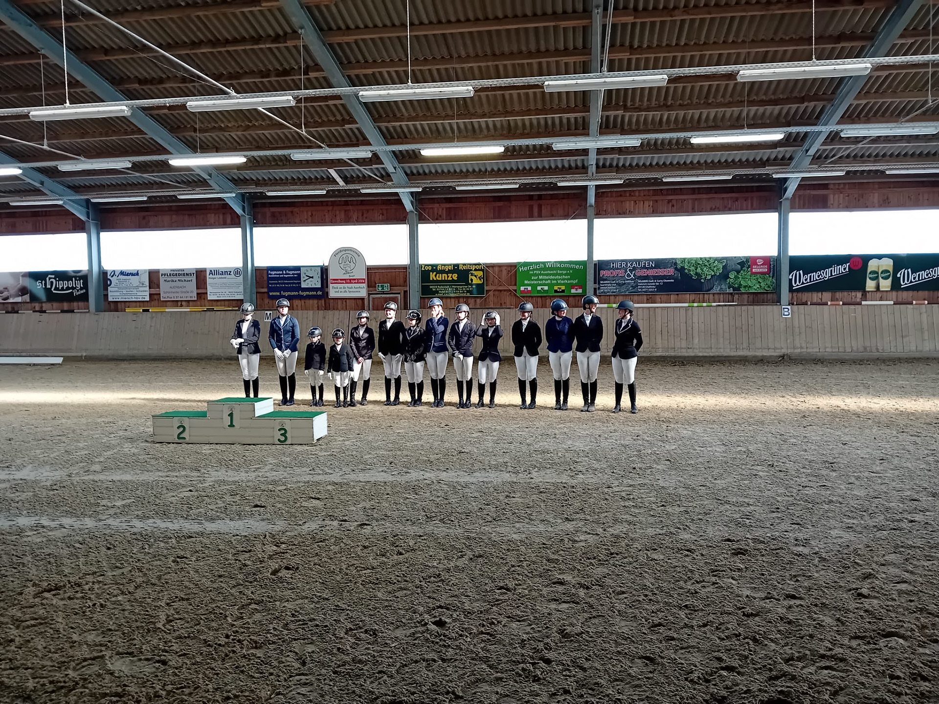 In Auerbach konnten vor allem unsere Jüngsten glänzen. Martha und Niklas sicherten sich in ihrem ersten Dressur-WB der Klasse E eine Platzierung. Auch im Reiterwettbewerb nahmen sie zusammen mit Fynn eine Schleife mit nach Hause. Fynn und Niklas konnten sich zudem noch über eine Platzierung in der Geschicklichkeit freuen. Elly konnte sich über den 5. Platz im Dressur-WB freuen. Auch im Stilspring-WB gingen wir nicht leer aus - hier konnten sich Mary, Elly und Nici über eine Platzierung freuen. im Abschließenden Springreiter-WB standen Jessica und Mary-Lou mit dem 2. und 3. Platz auf dem Siegerpodest.