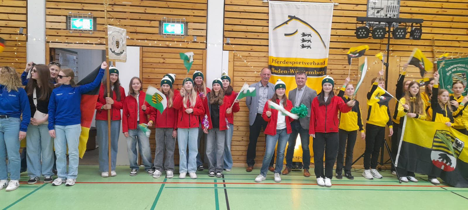 Der Dorfstädter Pferdesportverein stelle dabei mit Luisa, Ricardo und Sophie 3 Teilnehmer für das DM Team und mit Lina, Hanna, Mila und Lisbeth 3 Teilnehmer für den Nachwuchsvierkampf. Außerdem fuhren auch 5 unserer Pferde ( Privat und Schulpferde) mit zur Meisterschaft.