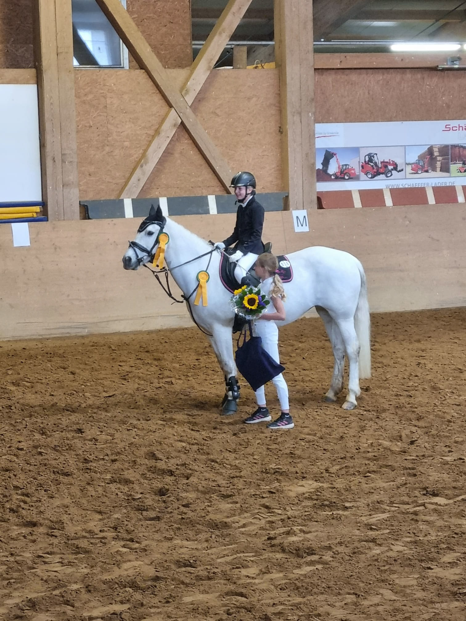 Hier konnte Maya ihren Einstieg in den Turniersport mit Amicella erfolgreich meistern und konnte sich eine Platzierung im Kreuzspringen sichern. Zudem konnten wir mit den Schimmel La Cantana und Crisu auch den 2. und 5. Platz im E-Springen mitnehmen. Für Cosma war damit auch noch eine Platzierung in der Kombiwertung sicher.