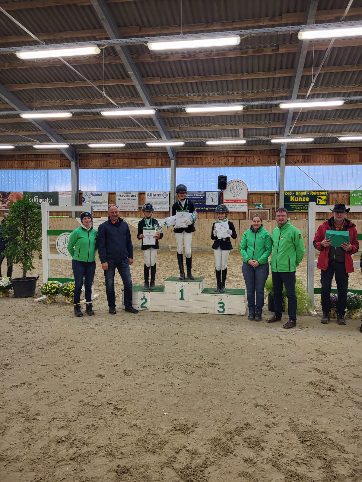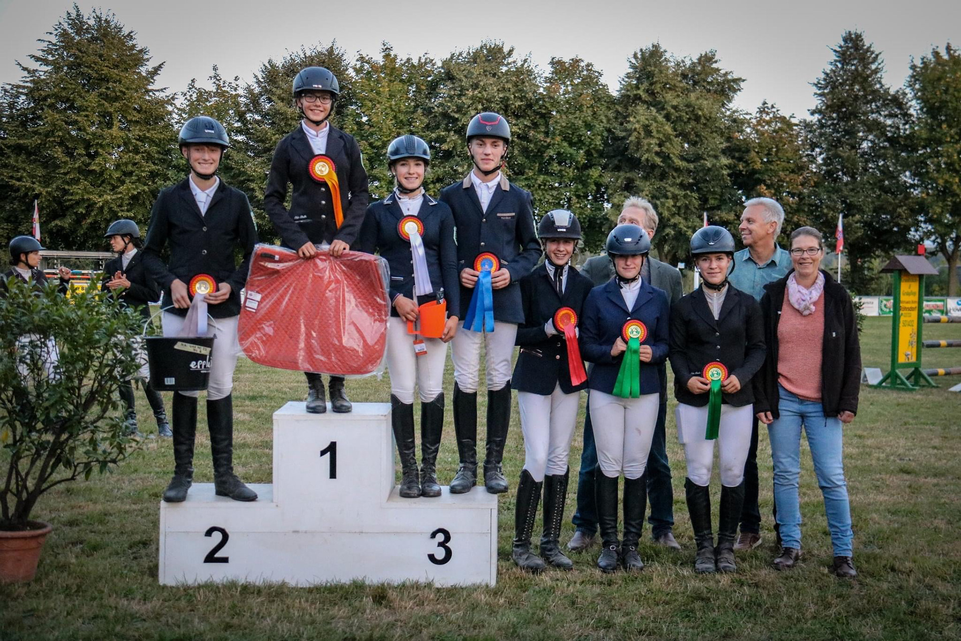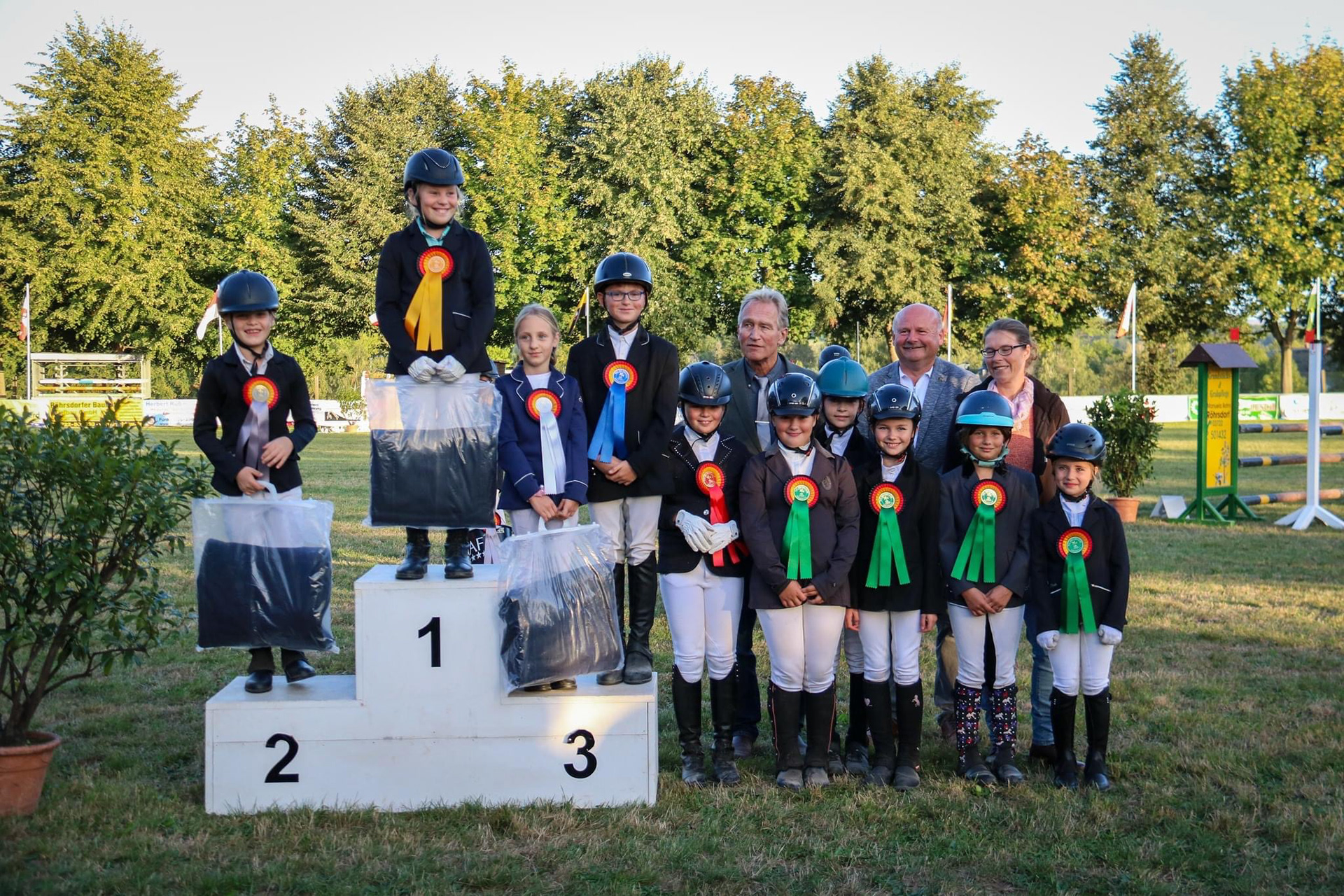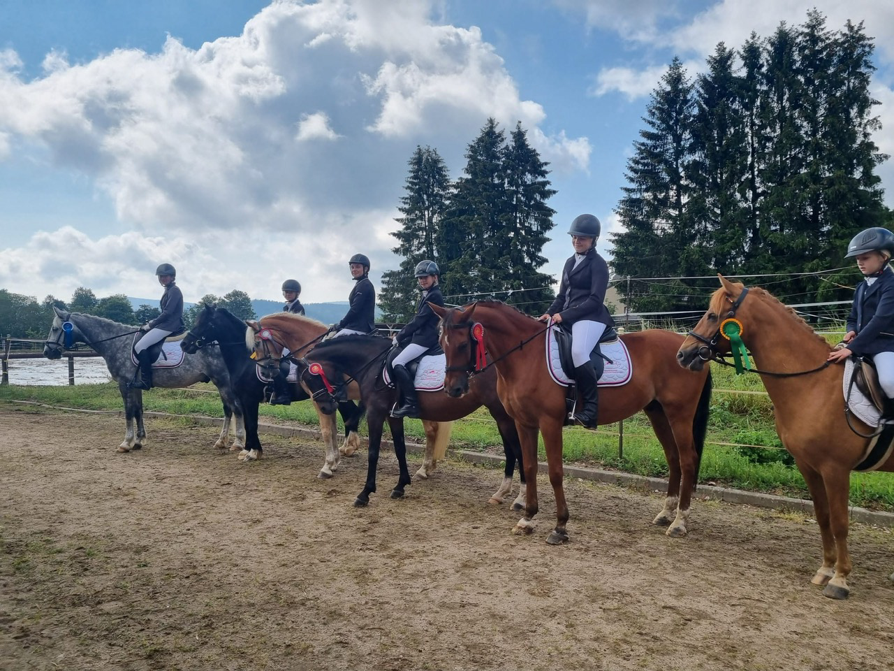 In Eibenstock konnten wir im Dressur-WB der Klasse E richtig punkten und Stellen mit Hanna die Siegerin der Prüfung und mit Jessica, Cosma, Lina , Leonie und Lisbeth ausserdem noch die Plätze 2, 4,5 und 7. Im Reiterwettbewerb konnte sich Lotta den Sieg mit nach Dorfstadt nehmen. Auch im E-Springen ging der Sieg nach Dorfstadt, hier konnte sich Cosma behaupten, Jessica und Lisbeth konnten sich an 2. und 4. Stelle platzieren. Für die Kombi-Wertung bedeutete dies ebenfalls der Sieg für Cosma , der 2. Platz für Jessica und der 4. Platz für Lisbeth. Im Führzügel WB konnte Walli den 1. Platz erreiten dicht gefolgt von Marta auf Platz 2.