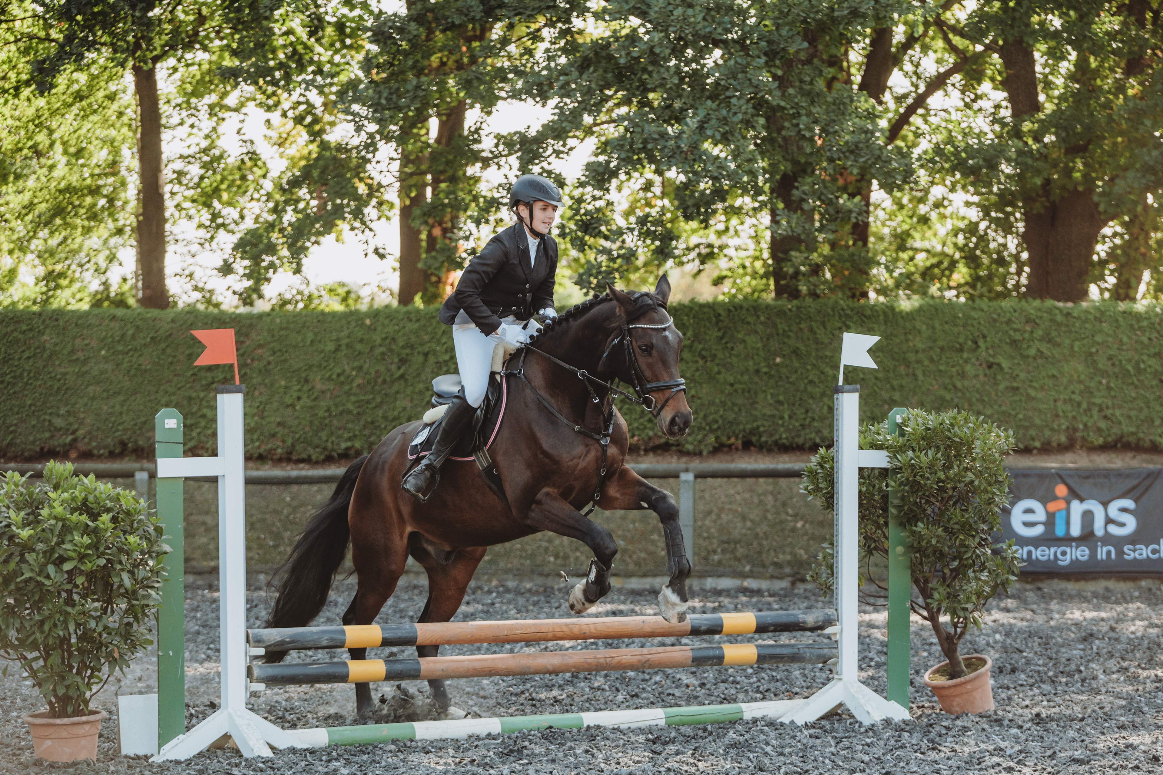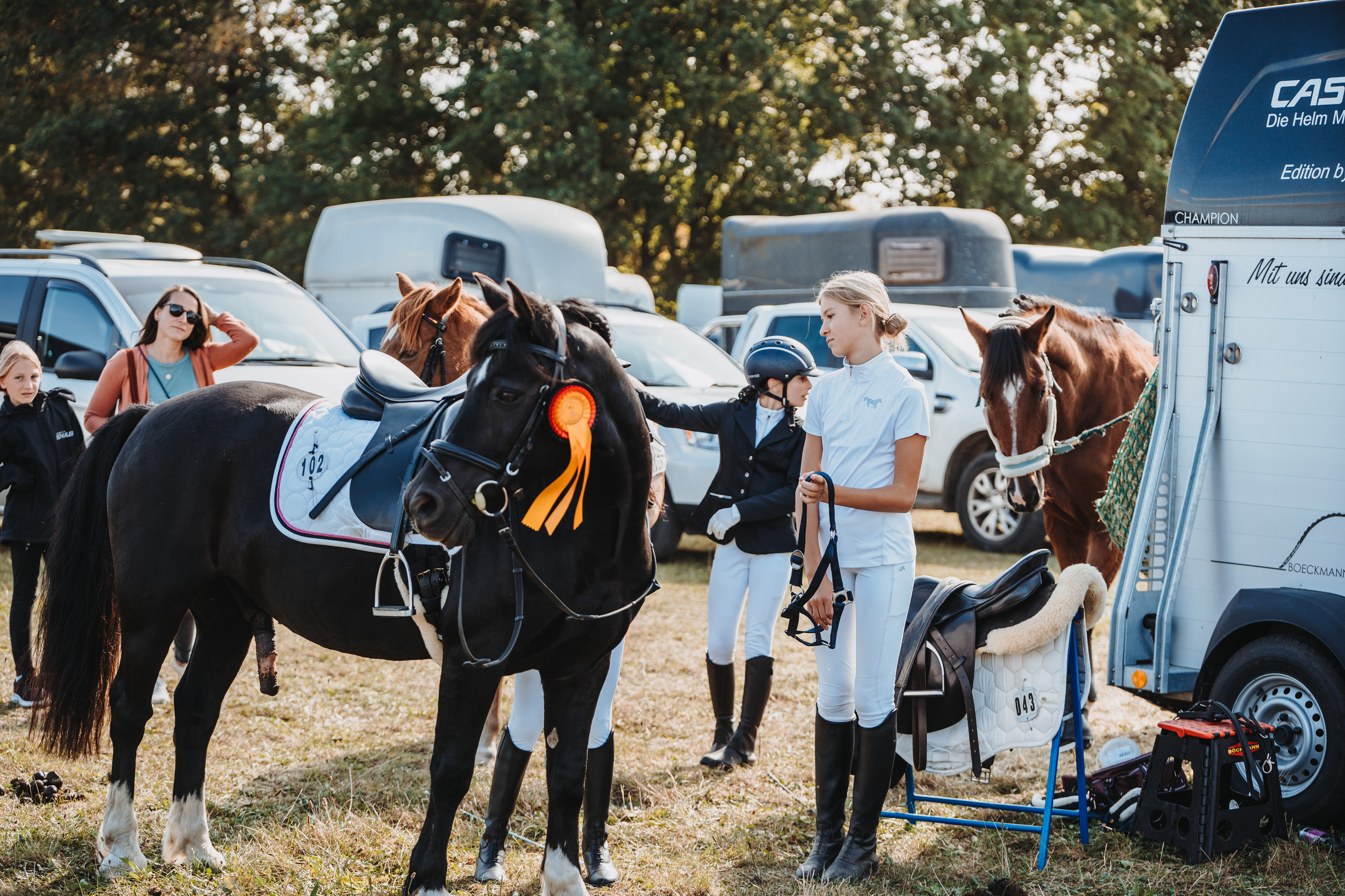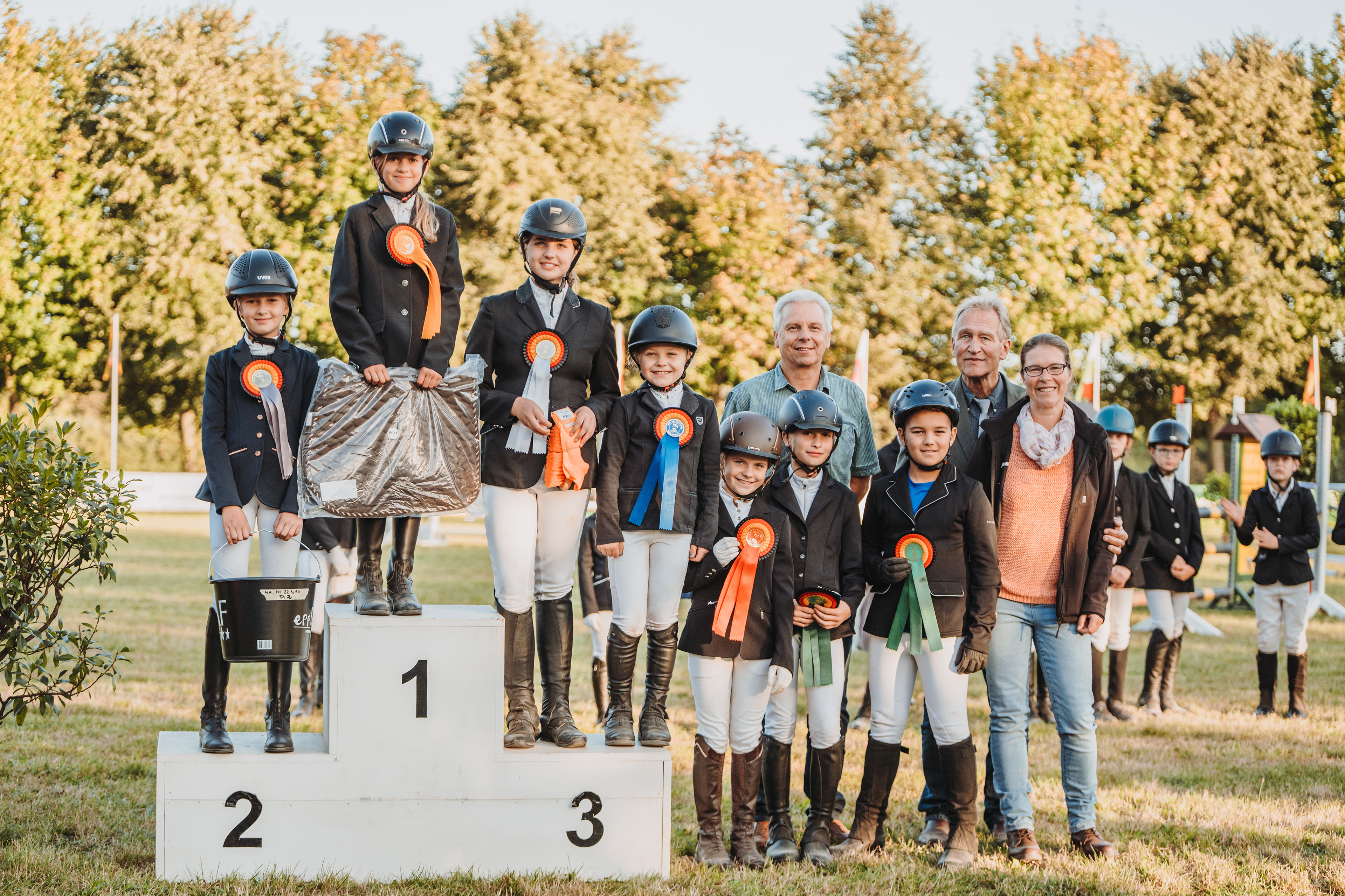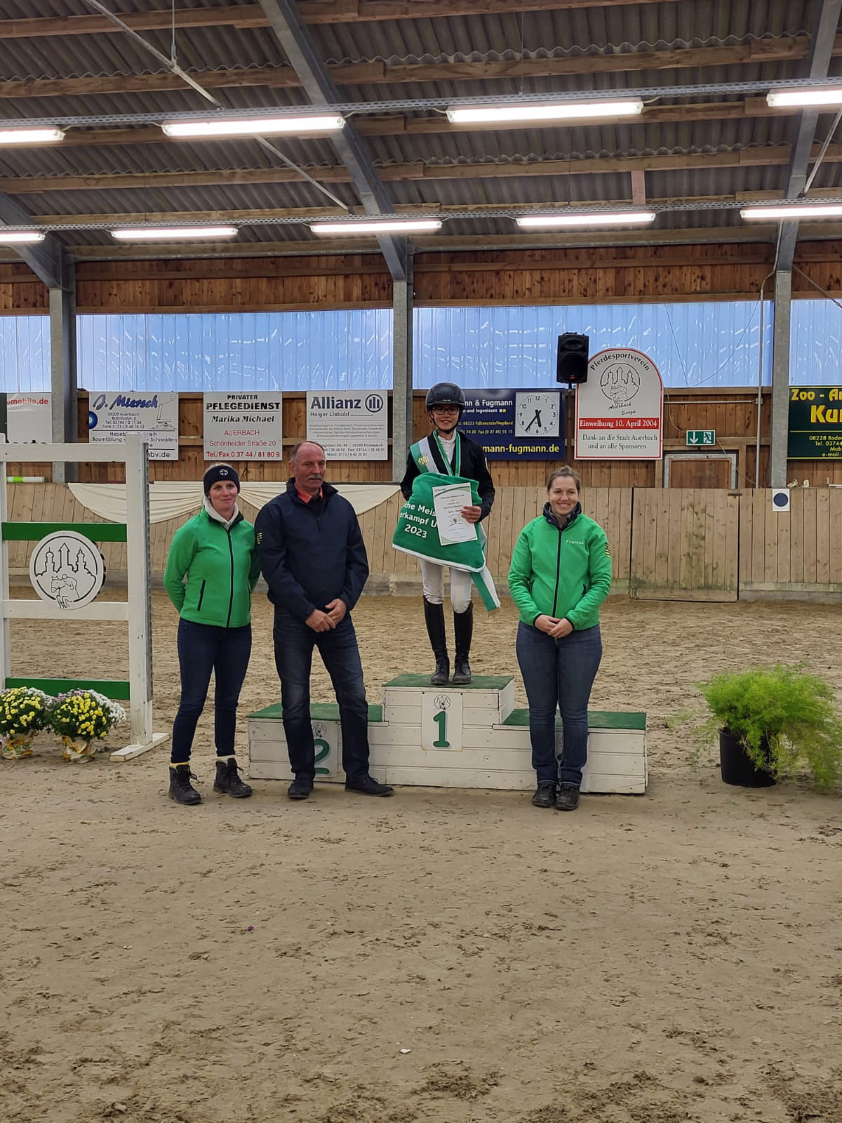In Eibenstock konnten wir im Dressur-WB der Klasse E richtig punkten und Stellen mit Hanna die Siegerin der Prüfung und mit Jessica, Cosma, Lina , Leonie und Lisbeth ausserdem noch die Plätze 2, 4,5 und 7. Im Reiterwettbewerb konnte sich Lotta den Sieg mit nach Dorfstadt nehmen. Auch im E-Springen ging der Sieg nach Dorfstadt, hier konnte sich Cosma behaupten, Jessica und Lisbeth konnten sich an 2. und 4. Stelle platzieren. Für die Kombi-Wertung bedeutete dies ebenfalls der Sieg für Cosma , der 2. Platz für Jessica und der 4. Platz für Lisbeth. Im Führzügel WB konnte Walli den 1. Platz erreiten dicht gefolgt von Marta auf Platz 2.