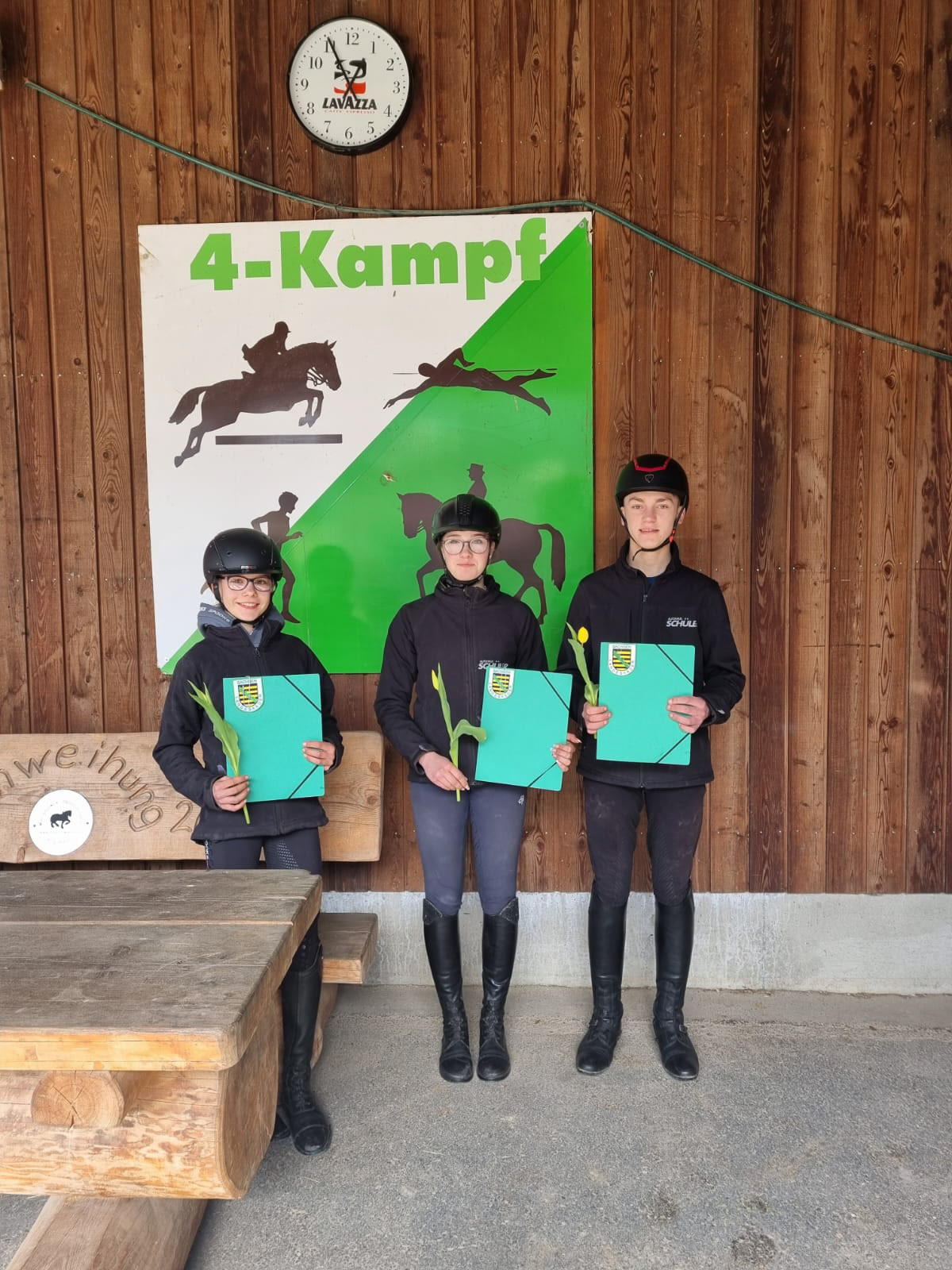 Lisbeth und Devil konnten sich den 1. Platz im Wettbewerb für angehende Vierkämpfer sichern. Lina konnte den 4. Platz , Ole den 7. Platz und Mary-Lou den 8. Platz in der Gesamtwertung erreichen.