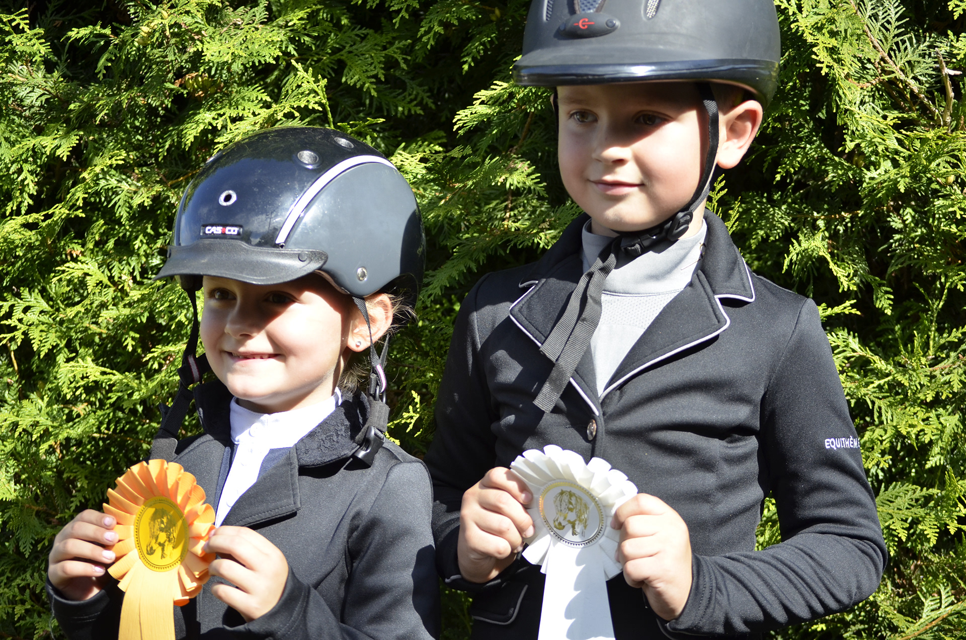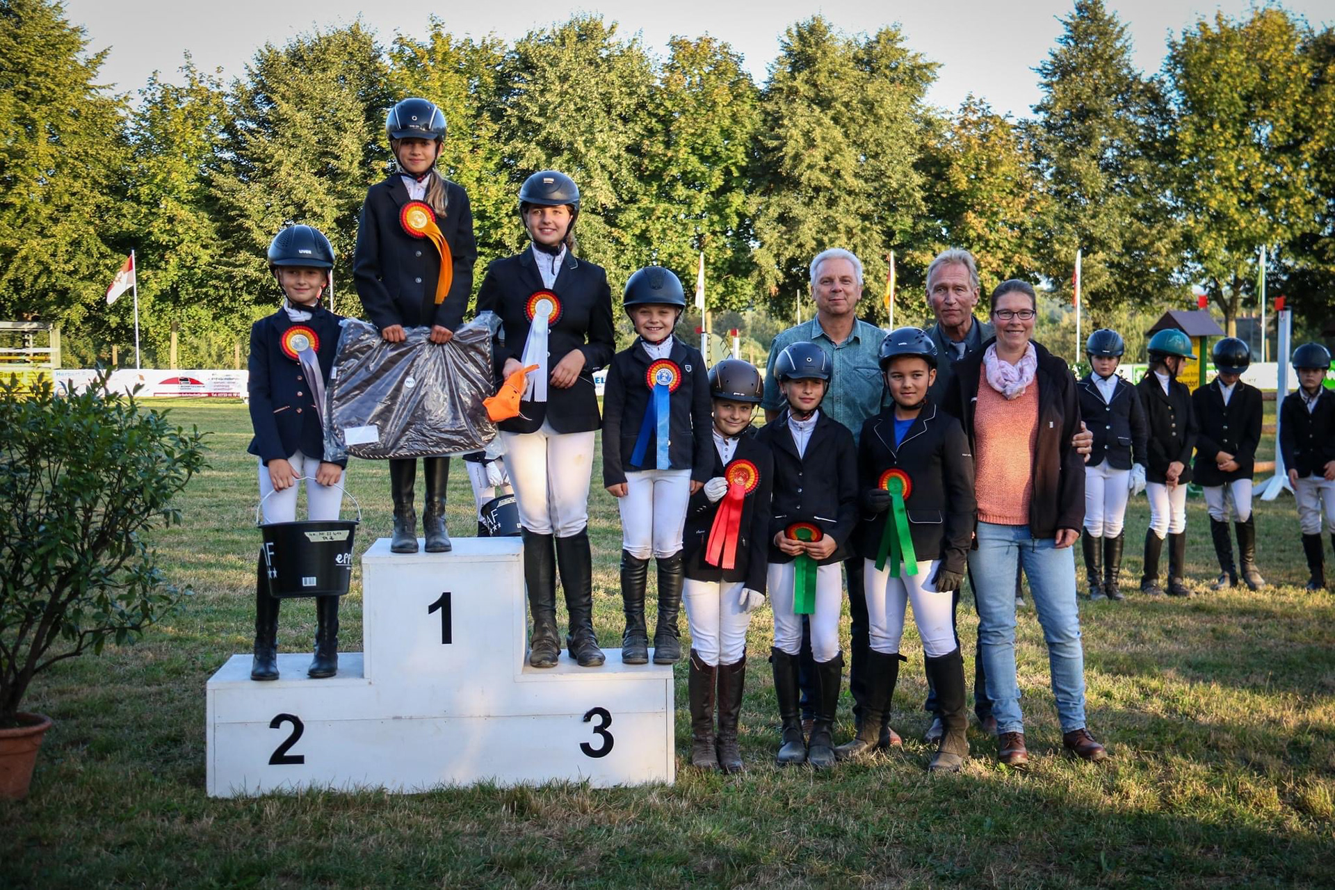 Außerdem freuen wir uns über zahlreiche Platzierungen in Führzügel-WB, Reiter-WB, A-Dressur , sowie in den Springprüfungen der Klasse A und E die unserer Reiter erreichen konnten. Besonders freuen wir uns über den Sieg im E-Springen für Alea und Mister Mäx und für Lina und Dyllin Devil im Führzügel-WB .
